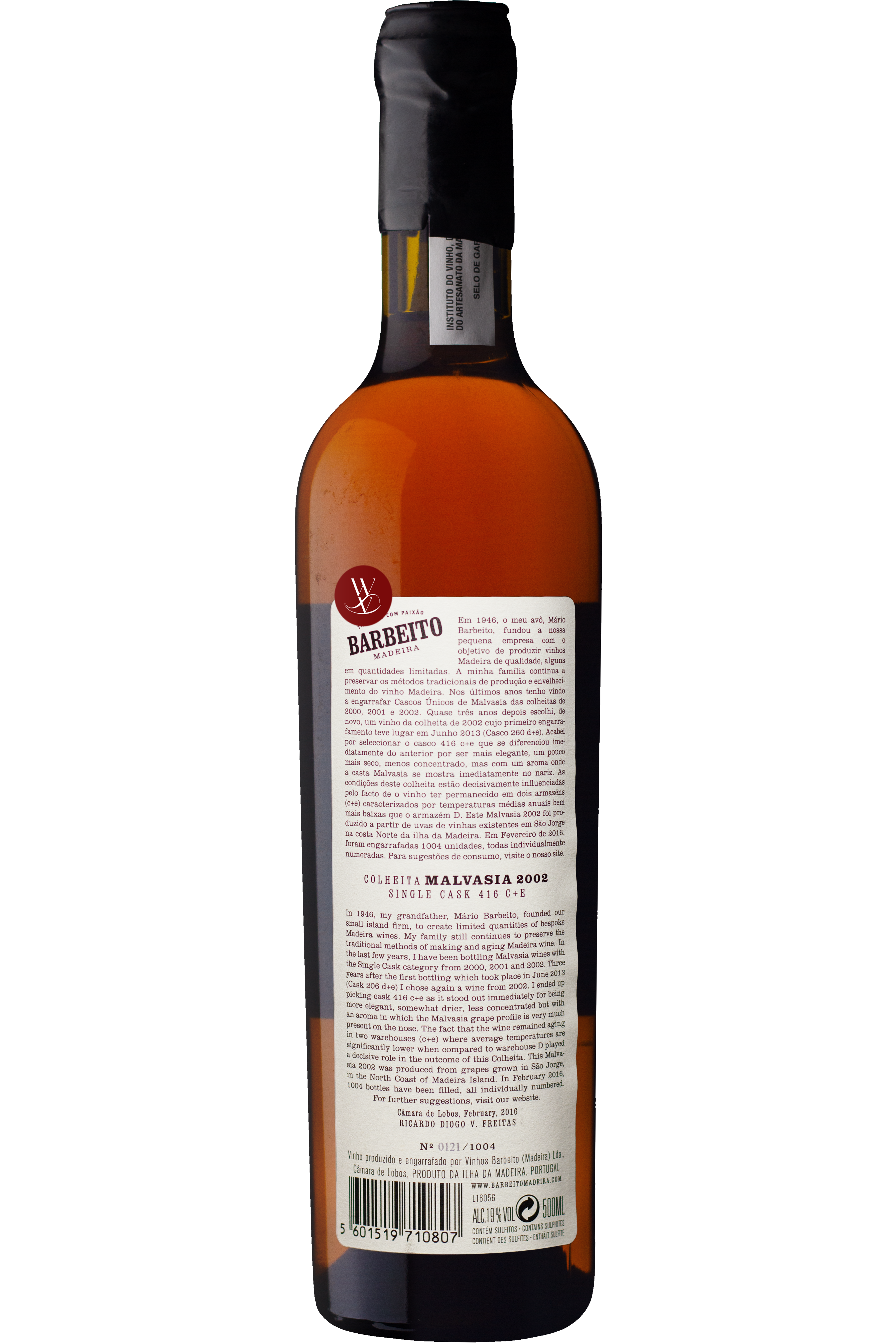Produced from the Malvasia grape variety and aged individually in barrels since 2002, Barbeito Single Cask Malvasia 2002 was produced from grapes from existing vineyards in São Jorge on the north coast of the island of Madeira.