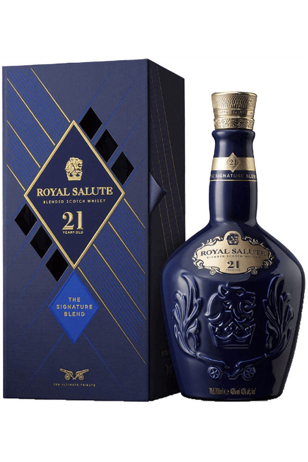 Royal Salute è stato lanciato il 2 giugno 1953, come tributo alla Regina Elisabetta II nel giorno della sua incoronazione. Il nome di questo eccezionale whisky scozzese deriva dal nome del Royal Salute Gun, che viene sparato in segno di rispetto per i dignitari potenti. Questo whisky ricco e complesso rappresenta il matrimonio perfetto di whisky di malto – ognuno dei quali è stato invecchiato individualmente in botti di rovere per 21 anni. È stato imbottigliato in anfore di porcellana britannica, fatte a mano.